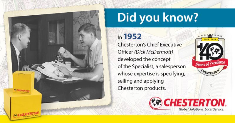 💡 En 1952, Chesterton designó el término “Especialista” a nuestros vendedores. Hoy en día, Chesterton cuenta con un equipo global de especialistas en ventas que son expertos en brindar soluciones para los desafíos más difíciles de nuestros clientes.